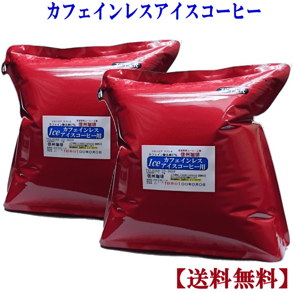 水出しコーヒー アイスコーヒー コロンビアカフェイン除去率97% 1Kg 500g×2パック アイスコーヒー用ノンカフェイン カフェインレス タンポポコーヒーでは満足できない方へ 水出し珈琲にも対応【送料無料】